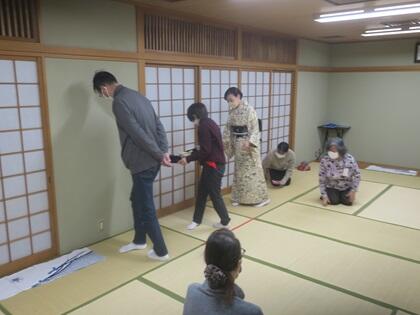 写真/2人1組でお客さん役、お世話役でお稽古します。